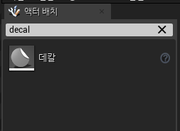 우선 액터를 배치하고, 디테일 창에서 Decal Material을 적용해주면 됩니다.